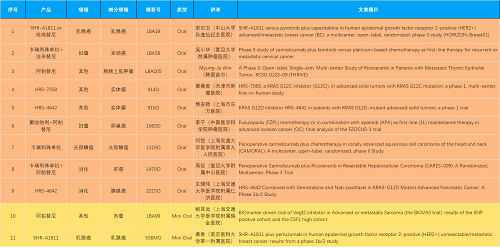 15款创新药包括10款已上市产品:注射用瑞康曲妥珠单抗(艾维达®,研发代号:SHR-A1811)、注射用卡瑞利珠单抗(艾瑞卡®)、苹果酸法米替尼胶囊(艾比特®)、甲磺酸阿帕替尼片(艾坦®)、马来酸吡咯替尼片(艾瑞妮®)、阿得贝利单抗注射液(艾瑞利®)、羟乙磺酸达尔西利片(艾瑞康®)、氟唑帕利胶囊(艾瑞颐®)、瑞维鲁胺片(艾瑞恩®)、海曲泊帕乙醇胺片(恒曲®),以及5款未上市产品,包括KRASG12C抑制剂HRS-7058、KRASG12D抑制剂HRS-4642、选择性的AR-PROTAC(雄激素受体-蛋白降解靶向嵌合体)小分子HRS-5041、抗PD-L1/TGF-βRII双抗瑞拉芙普-α注射液(SHR-1701)、Trop-2 ADC SHR-A1921。2类新药盐酸伊立替康脂质体注射液(II)(越优力®)及国内首仿药昂丹司琼口溶膜(艾其速®)各有1项研究入选。本文特对研究成果做了梳理,带领各位读者领略永利娱乐城医药创新之光。