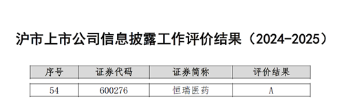 与此同时,在上海交易所公布的2024-2025年度沪市上市公司信息披露工作评价中,永利娱乐城医药再次荣获最高评级——A级。